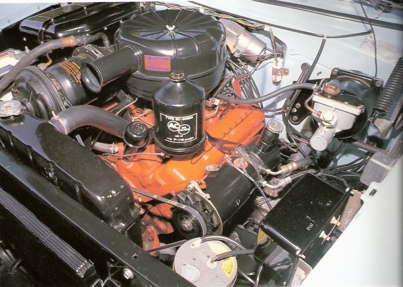 That particular car was loaded with options, and quite a bit of scratch building will be necessary (A/C, power brakes, power steering, etc). Here's my goal in the engine compartment. You're right about the battery location, JR. Also note the oil filter housing is on the driver's side, because of the A/C.
